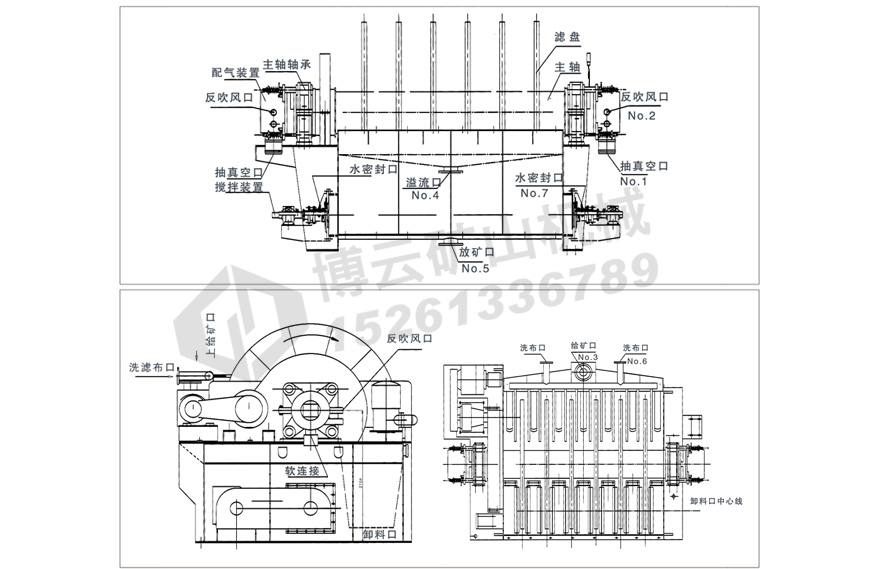 連云港博云礦山機械生產的盤式過濾機目前已廣泛應用于銅、鐵、金、銀、錫、鋁、鉛、鋅、鎳、鈷、鈀、鉬、鉻、銘、 硫、磷、煤、硅、石英、云母、錫土等精礦、尾礦脫水、化工行業氧化鋅、氧化鉛、硫化鋅、電解渣、浸出渣、爐渣 的脫水及環保污水泥脫水廢酸處理等。物料細度從-60目到-300目以及常規顆粒物料。